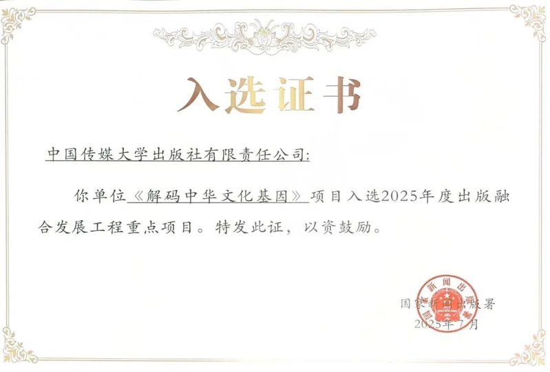 由中国传媒大学出版学院师生团队联合策划、编创、制作,中国传媒大学出版社出版、运营的《解码中华文化基因》出版融合发展项目成功入选。